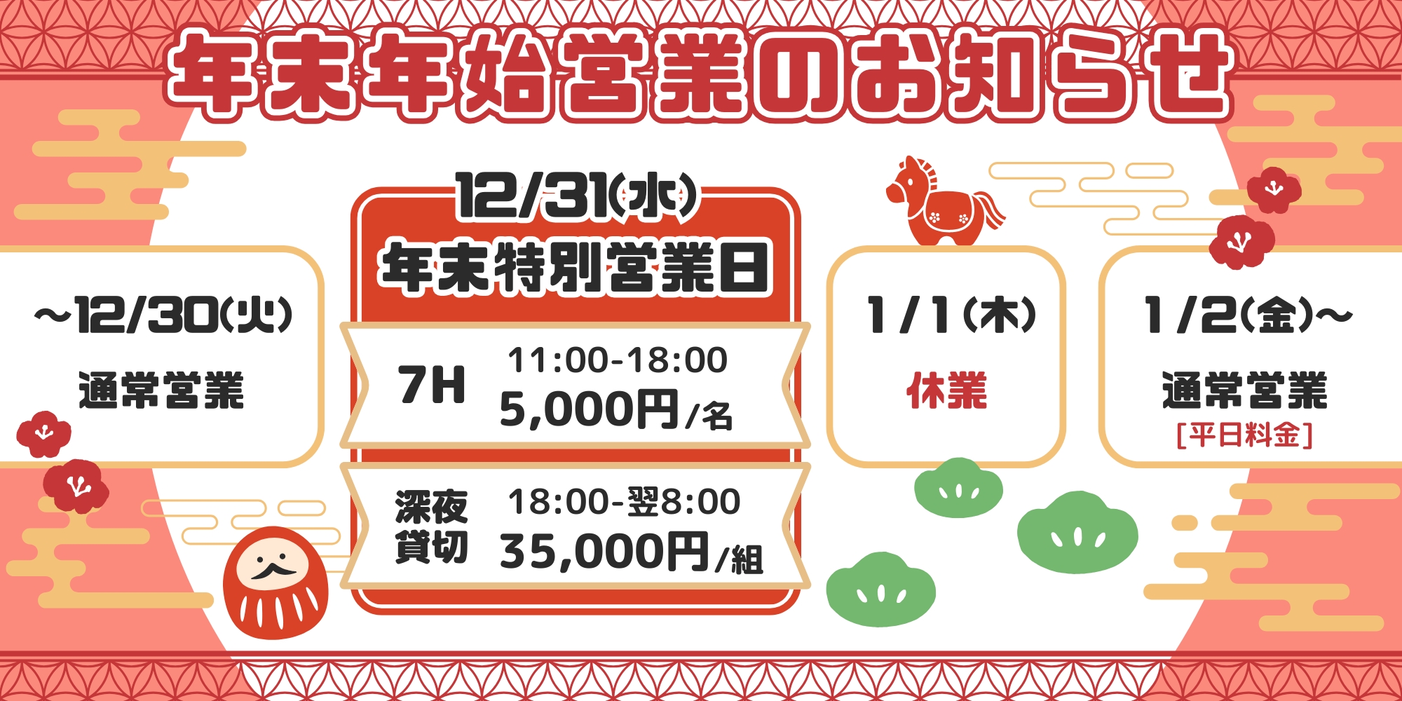 2026年は1月1日は休業、1月2日から通常営業となります。