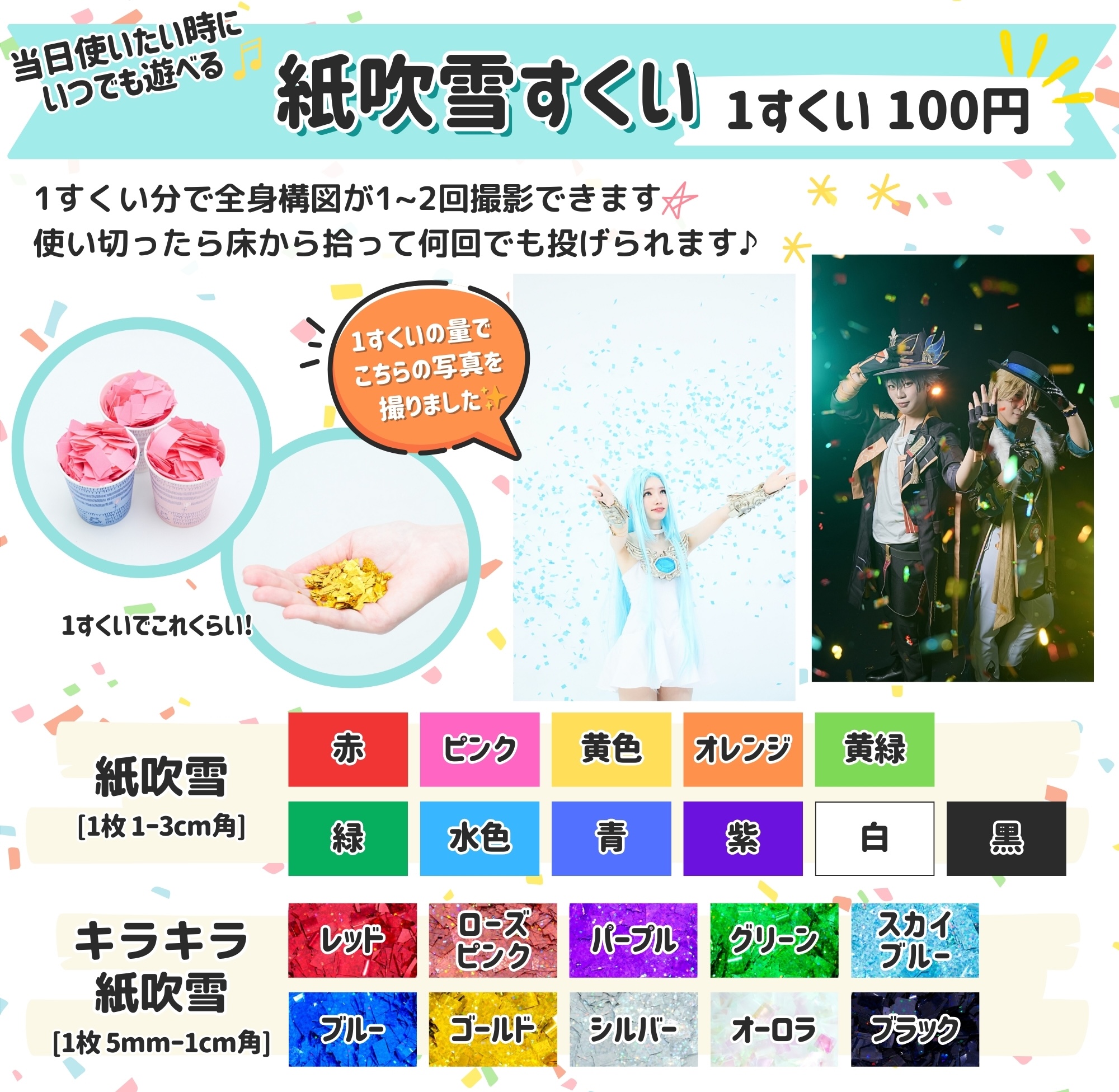 | 紙吹雪すくい 《当日販売》1すくい100枚程度 バストアップ写真が1〜2回撮れます◎ | 1すくい/ 100円 |