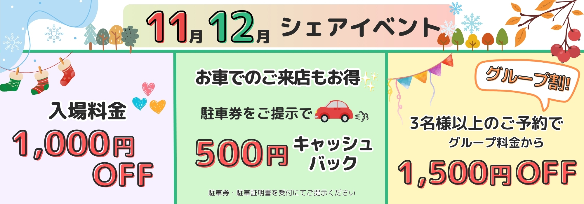 | 1部(10:00-15:00) 2部(15:00-20:00) | 5,000円 ➡︎4,000円 \キャンペーン中!/ |